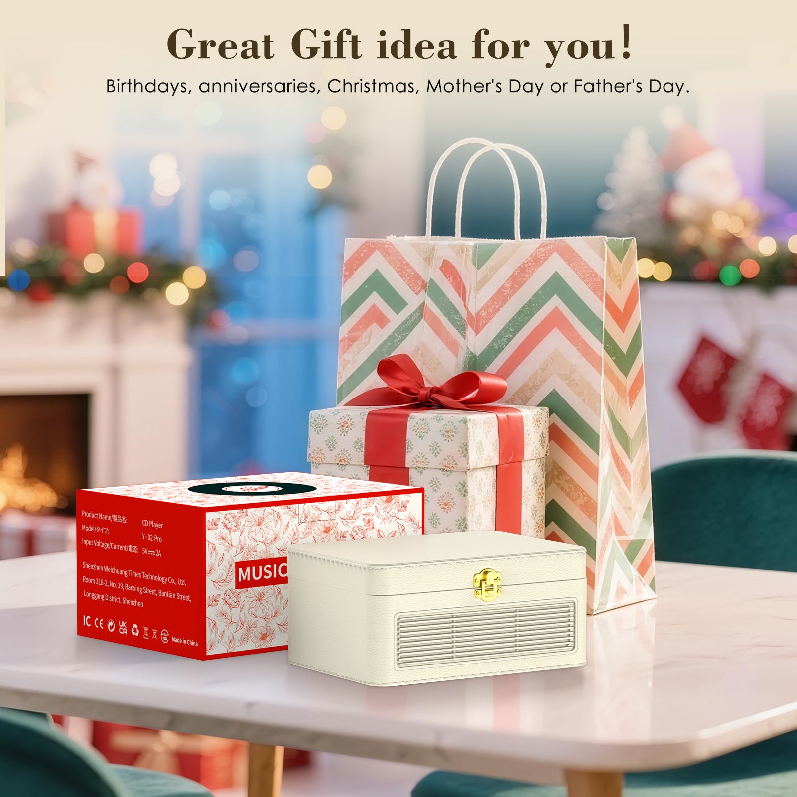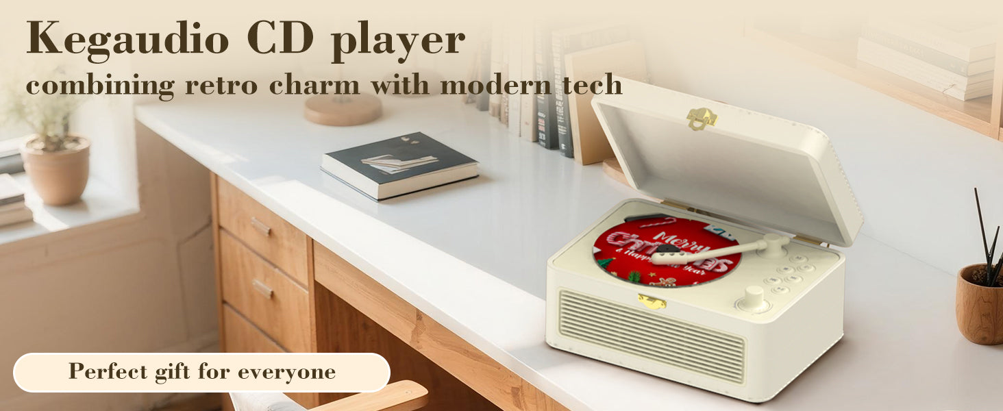 Inspired by classic turntables, the Kegaudio Desktop CD Player for Home combines a vintage wooden design with modern technology. Its dust-proof cover and tonearm switch add nostalgic charm. It’s also an ideal gift for music lovers, children, or anyone who appreciates timeless design — perfect for birthdays, holidays, or special occasions.