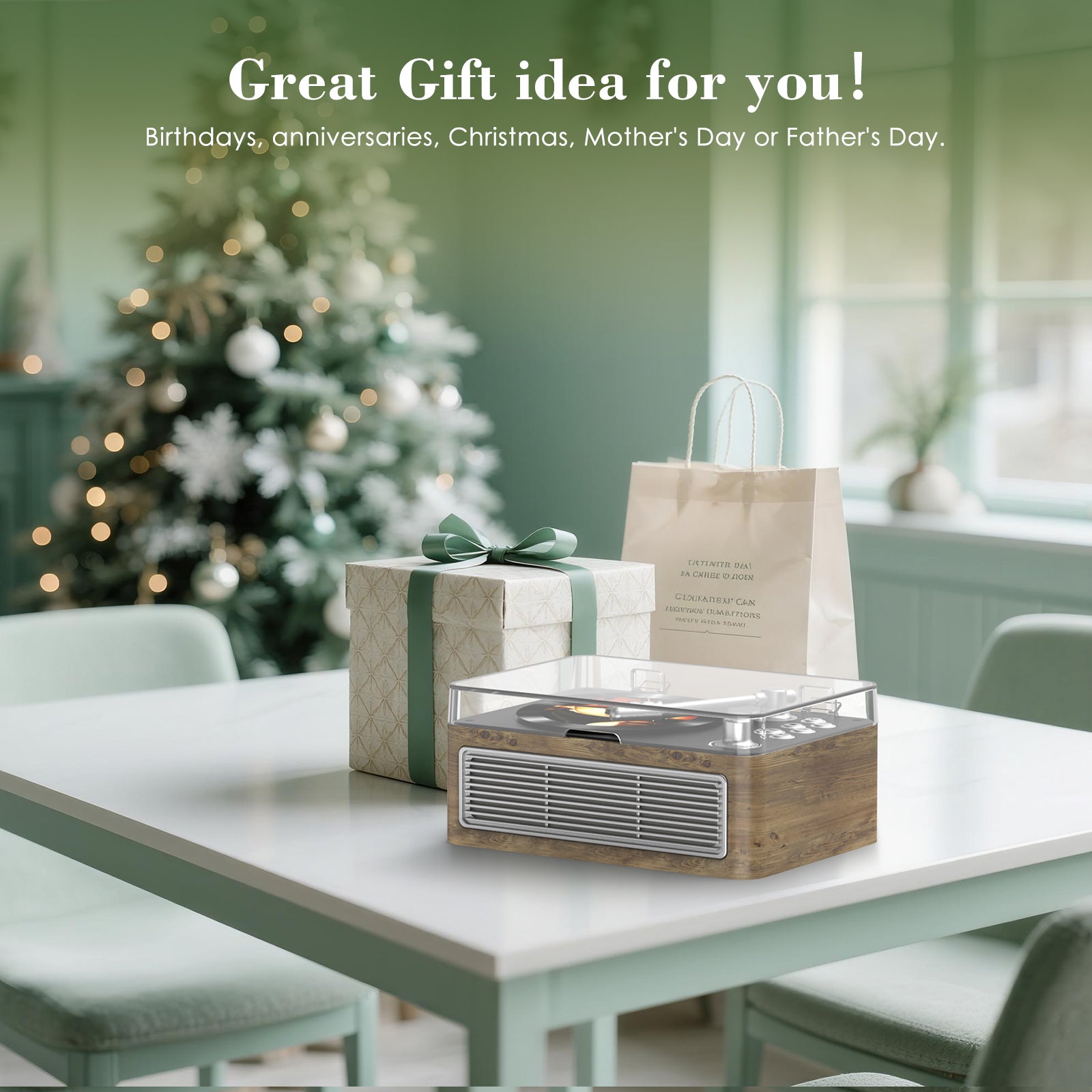 Inspired by classic turntables, the Kegaudio Desktop CD Player for Home combines a vintage wooden design with modern technology. Its dust-proof cover and tonearm switch add nostalgic charm. It’s also an ideal gift for music lovers, children, or anyone who appreciates timeless design — perfect for birthdays, holidays, or special occasions.