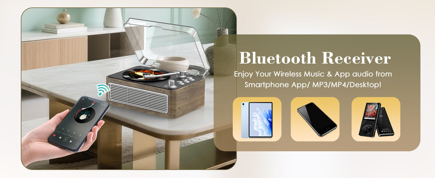 • Bluetooth Receiver Mode: Works with iPhone, Android, iPad, and other Bluetooth devices