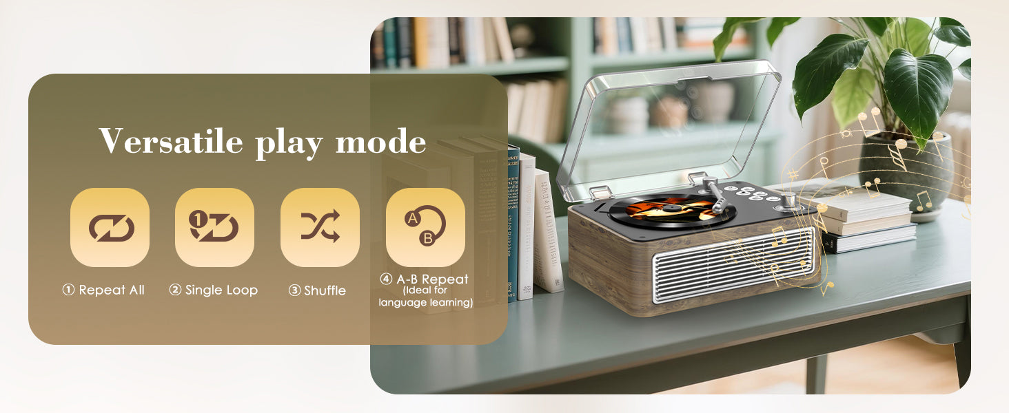Enjoy your music your way. The Kegaudio home CD Player supports multiple playback modes including CD, Bluetooth (receive & transmit), FM radio, USB input, AUX, and A-B repeat. Compatible with CD, CD-R, CD-RW, MP3, and WMA, it’s perfect whether you’re rediscovering your favorite albums or playing digital tracks with modern clarity.