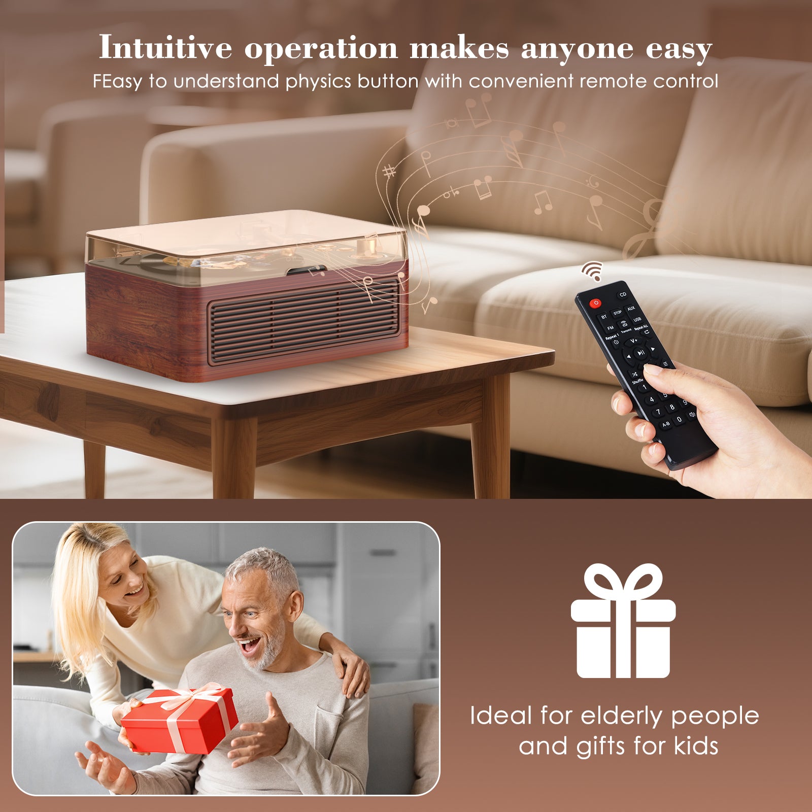 Inspired by classic turntables, the Kegaudio Desktop CD Player for Home combines a vintage wooden design with modern technology. Its dust-proof cover and tonearm switch add nostalgic charm. It’s also an ideal gift for music lovers, children, or anyone who appreciates timeless design — perfect for birthdays, holidays, or special occasions.