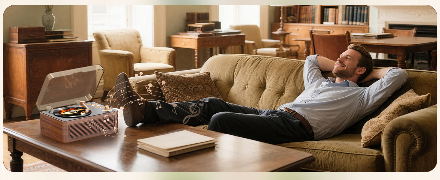 Put on your favorite CD, let the familiar melody flow gently through the living room — sunlight spills across the wooden speaker, and the air fills with the soft aroma of coffee.