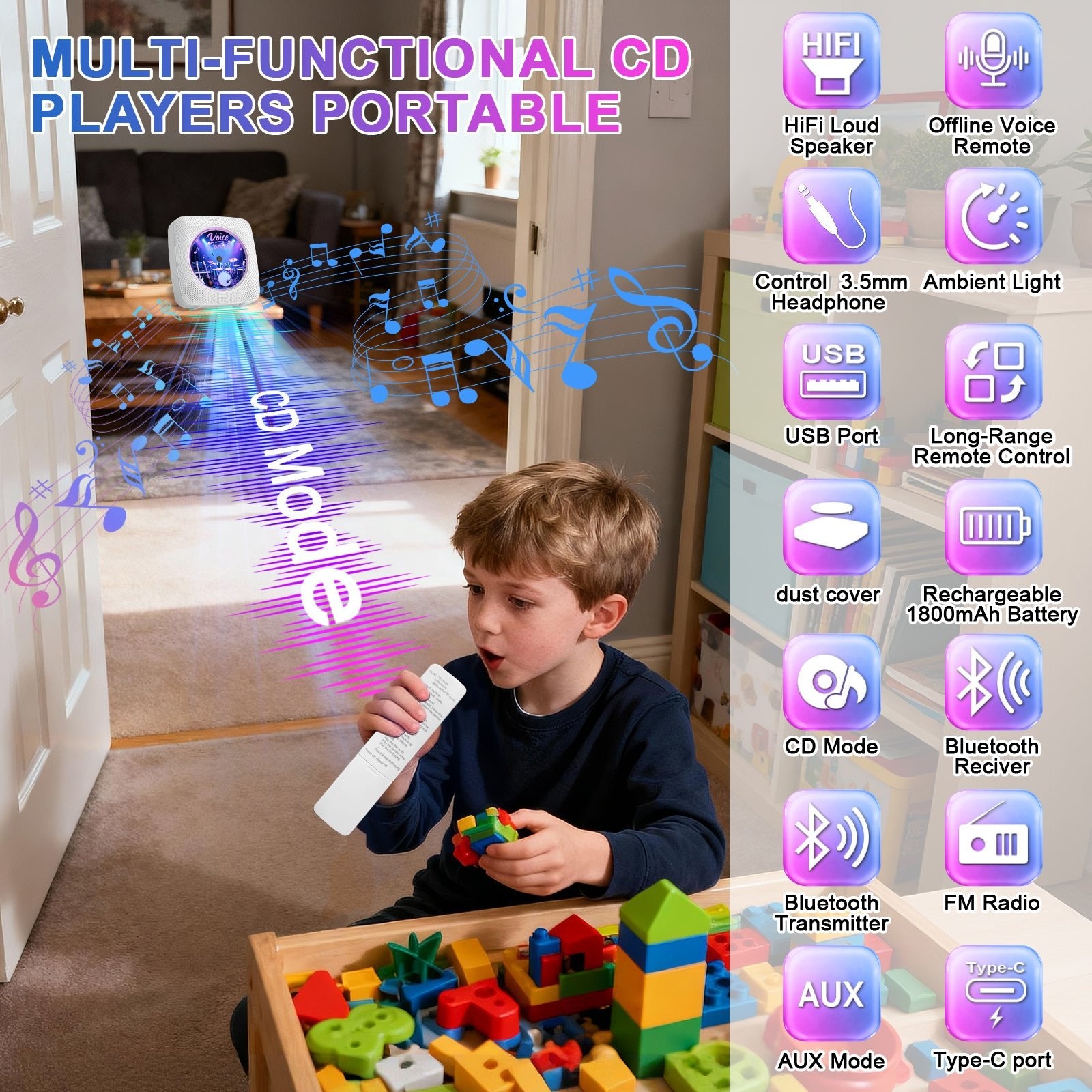 - 50m Offline Voice Control: Hardware-based recognition lets you control your CD player from anywhere at home, faster and more reliable than infrared remotes.
